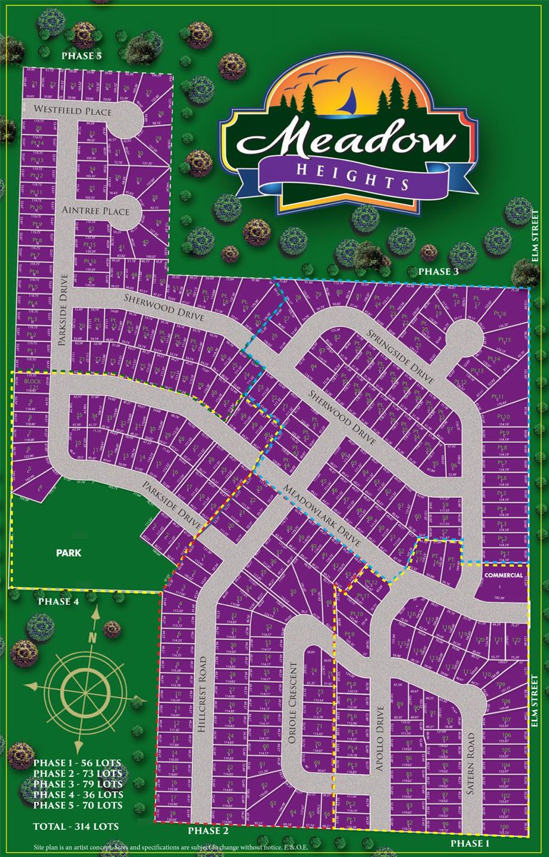There is one commercial property along with several municipal parks and fields planned. Individual lots will be sold by the developer to builders for custom home design and construction. Each lot comes serviced with residential electric, gas, water, sanitary sewer, telephone and cable service.